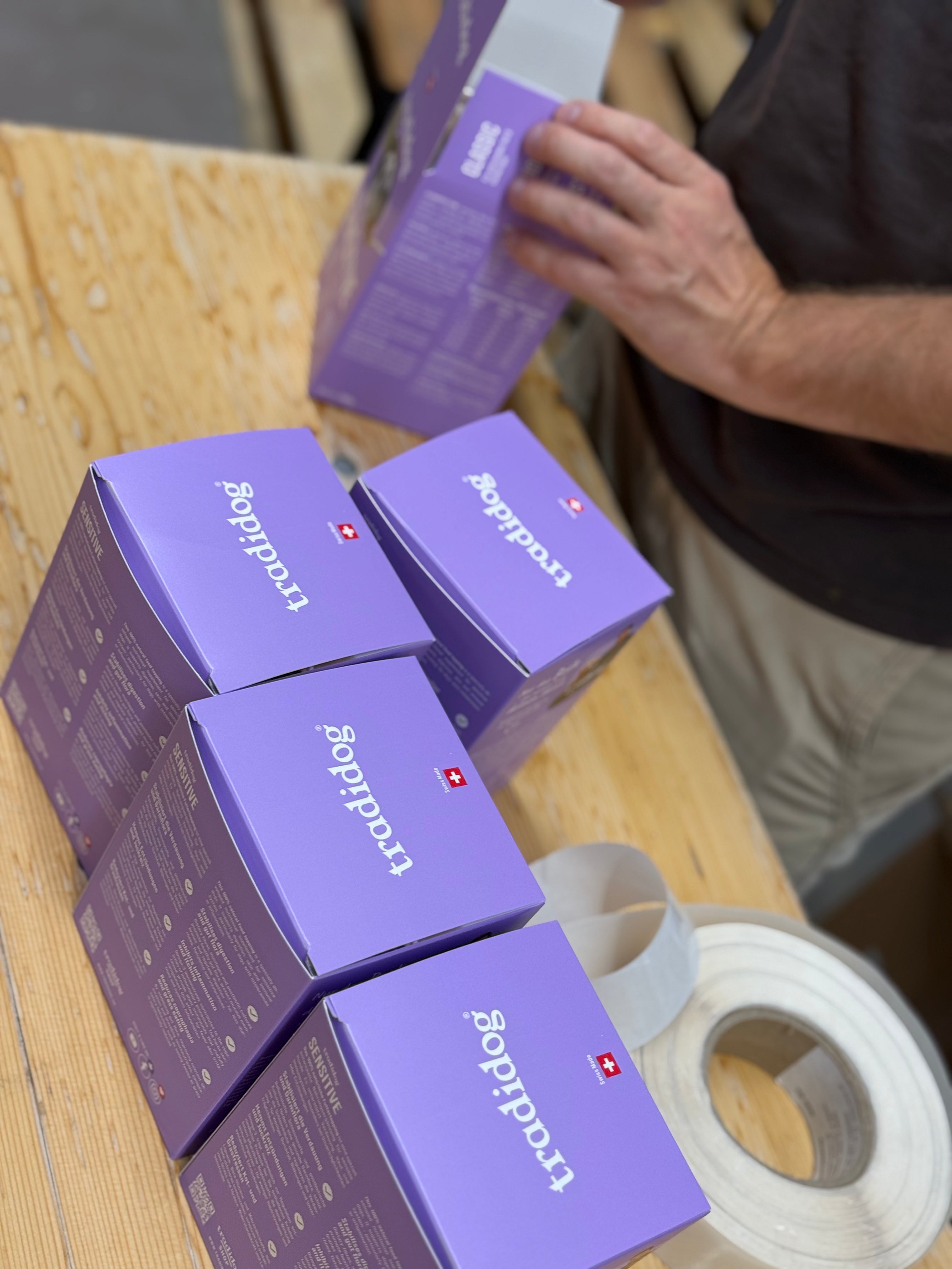 At Tradidog, your dog is our focus – every day, in every decision. We produce everything ourselves and exclusively in Switzerland, with the care and precision you expect from Swiss quality. Our ingredients are purely natural, come from controlled cultivation, and are processed in a way that preserves their full plant potency. Because we believe that what truly helps your dog comes from nature – and from genuine responsibility.