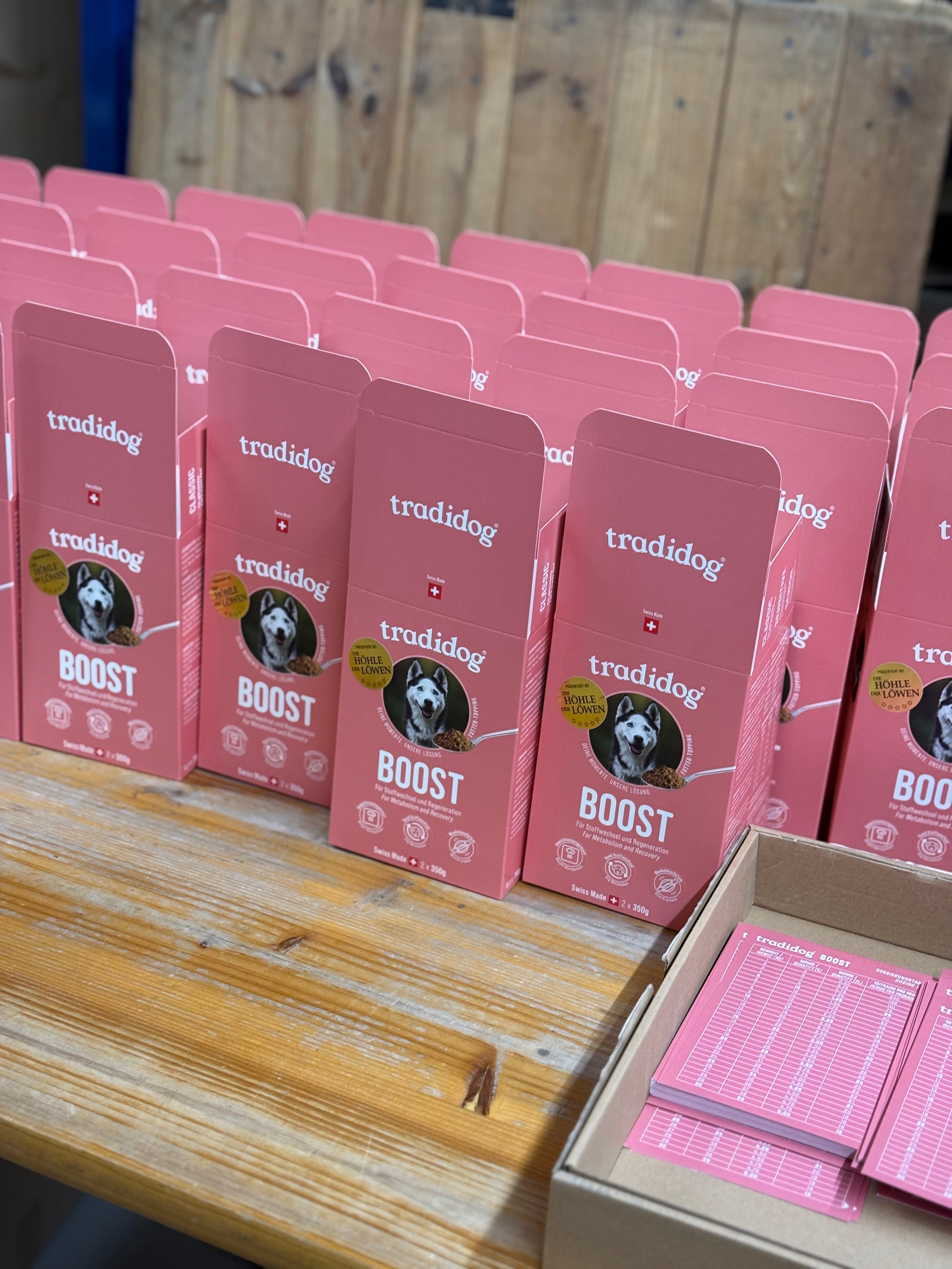 Tradidog is the Swiss brand for natural food toppings – developed to give dogs what they often lack in everyday life: highly effective nutrients in a purely plant-based form. Founded by Kim and Bailey, we combine the innovative strength of a young team with the experience of a family business with over 30 years of pet nutrition.